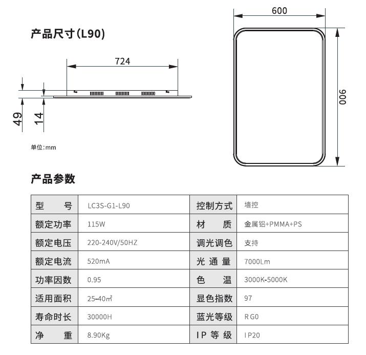 C2护眼吸顶灯-方形-M版产品简介